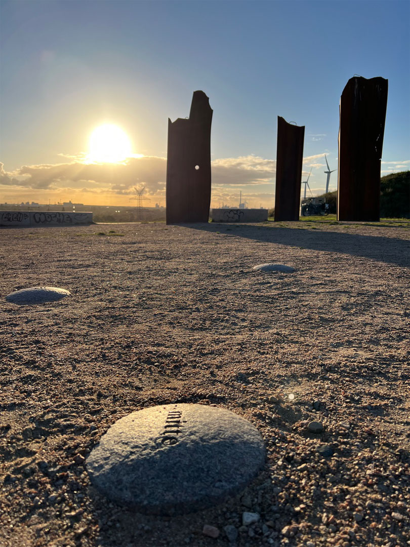 So sieht der Sonnenuntergang dann hoffentlich auch genau vom Mittelpunkt des Stelenkreises aus!