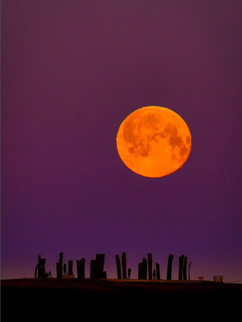 Verfinsterter Mondaufgang über Metalhenge am 7. September