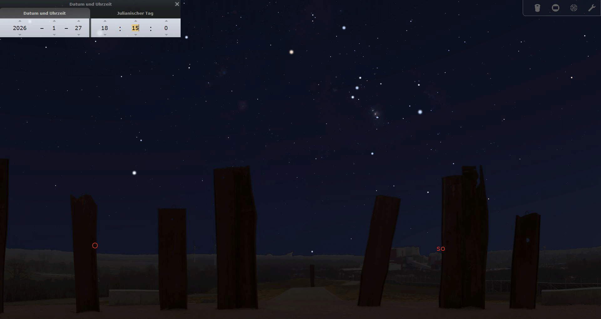 Ab Mitte November ist Sirius-Zeit: Dann kann man den Aufgang von Sirus täglich vom Zentrum aus durch das Sirus-Tor über der Sirius-Stele beobachten.