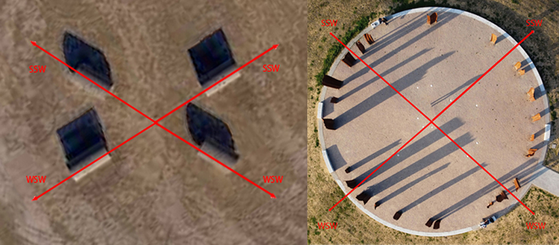Die gesamte Anlage ist in diesem Video schön zu sehen. Die Achsen der Röhren sind genau zu den Sonnenwenden ausgerichtet. Hiermit ergibt sich eine Analogie zu Metalhenge: