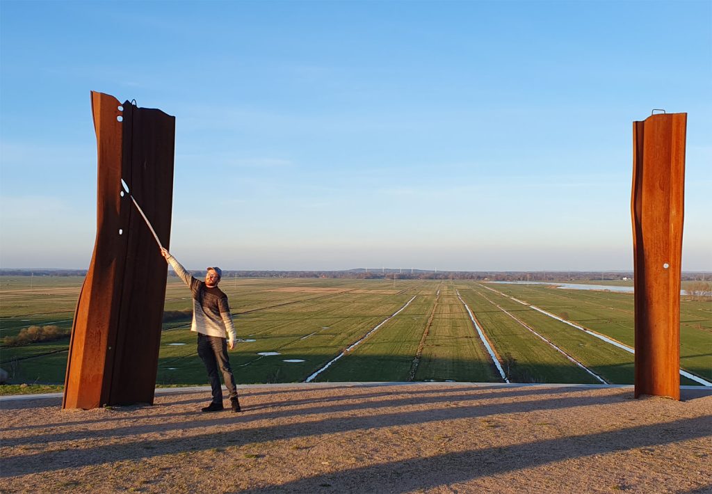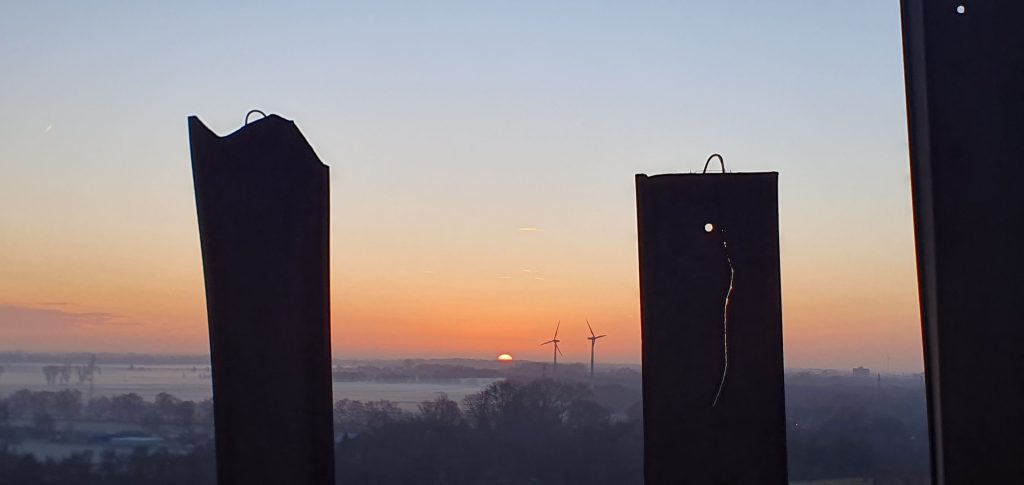 Leider war der Horizont doch zu dunstig, so dass der Effekt nicht wie vorgesehen aus einer Augenhöhe von 1,50 Metern beobachtet werden konnte, wir haben da etwas nachgeholfen.