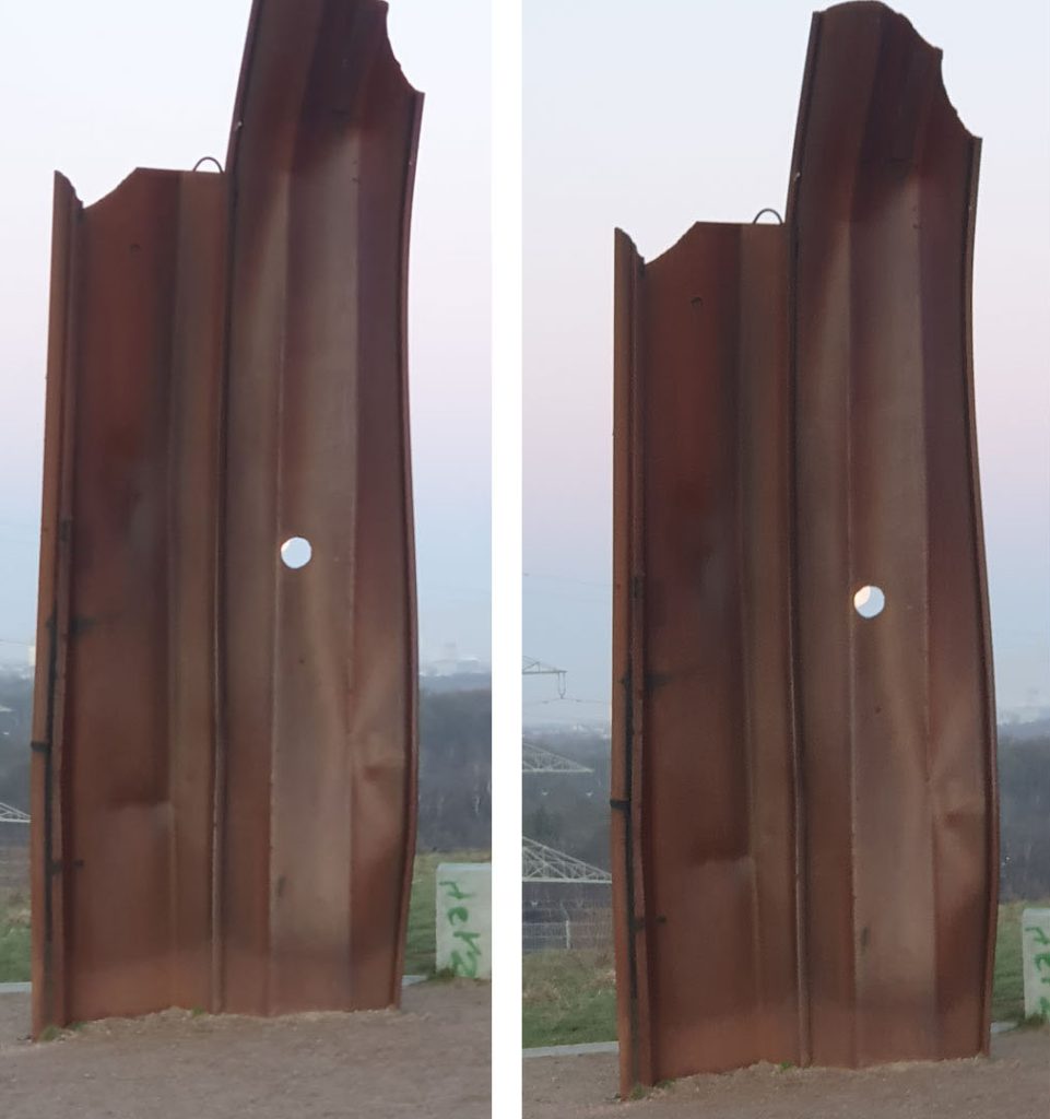 Auf Metalhenge geht die Sonne am 20.3.2026 um 06:27 Uhr hinter der Ost-Stele auf und um 18:37 Uhr hinter der West-Stele unter – genau in dem dafür vorgesehenen Loch. Somit kann man vom Mittelpunkt der Anlage – aus einer Augenhöhe von 1,50 Metern – den Untergang der Sonne zur Tagundnachtgleiche genau dort beobachten.